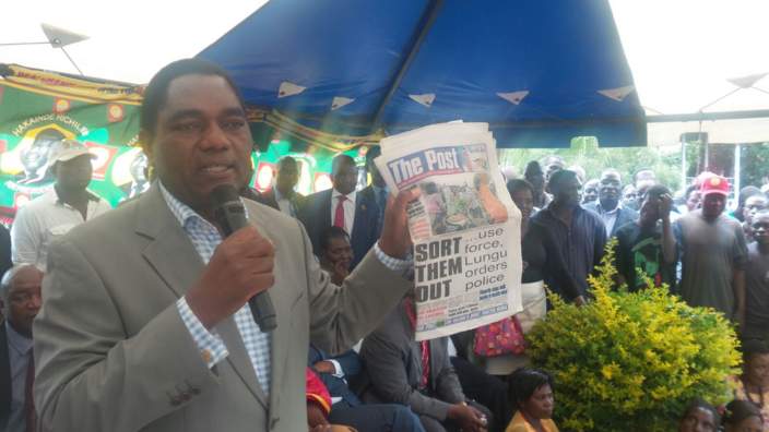 Mr Hichilema has called on the president to provide leadership and end violence.