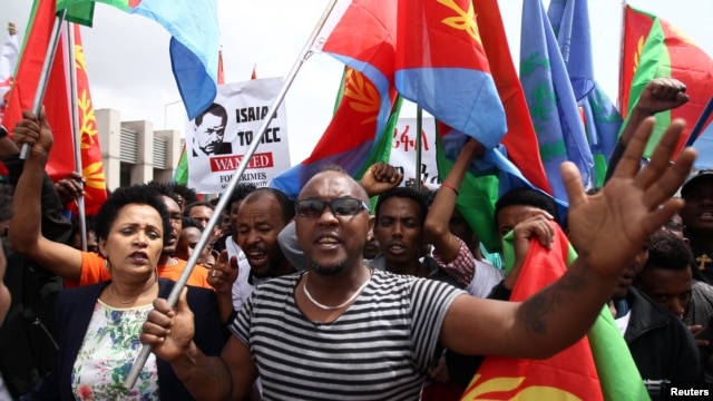 Elsewhere, hundreds of Eritrean refugees gathered outside African Union headquarters in neighboring Ethiopia to protest the alleged crimes back home.