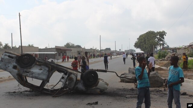 | FILE - A burnt out vehicle lays on its roof in Lusaka, Zambia, April 7, 2016. |